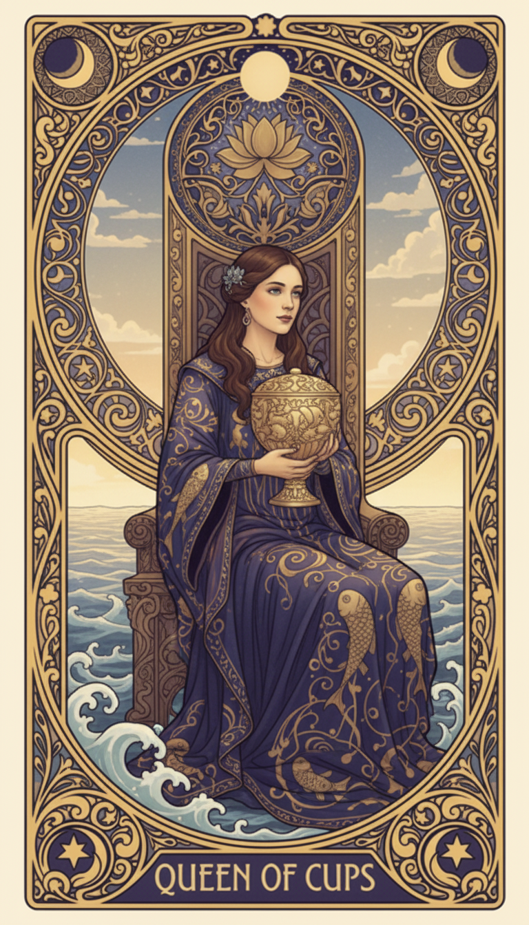 You pulled the Queen of Cups and felt something soften — a sense of depth, of quiet knowing, of emotional intelligence that does not need to announce itself. This is the card that appears when your empathy is not just present but active, when you are the person others seek out not for advice but for the feeling of being truly understood.